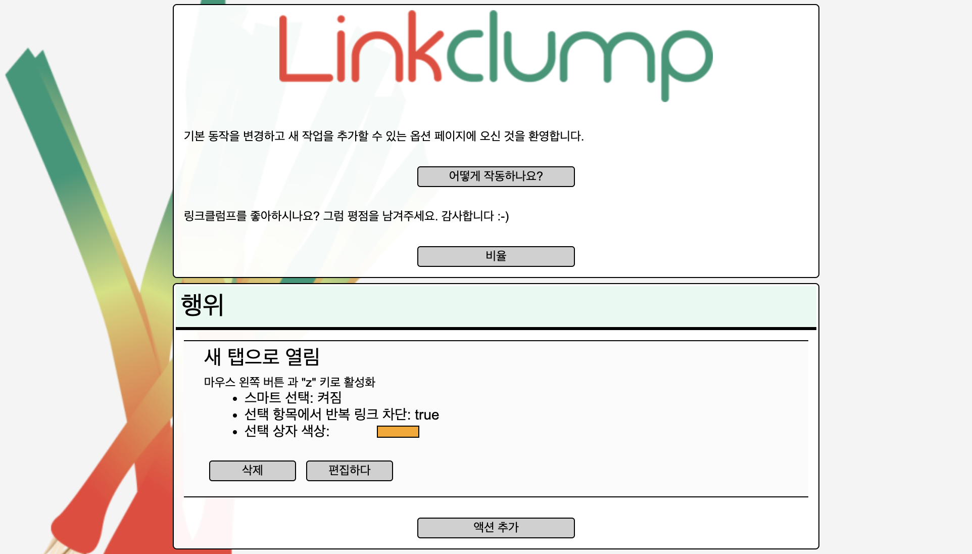 Linkclump 옵션으로 들어가서 단축키를 변경하거나 그대로 사용하기