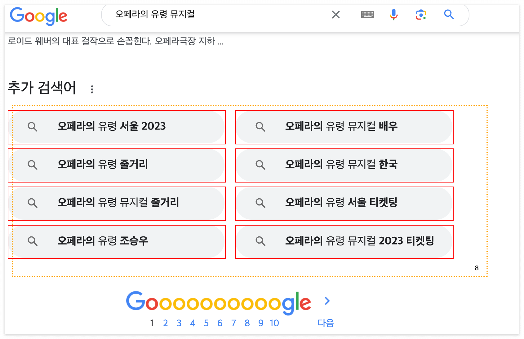 만약 크롬 창에서 구글을 열고 뮤지컬 제목을 검색했다면,